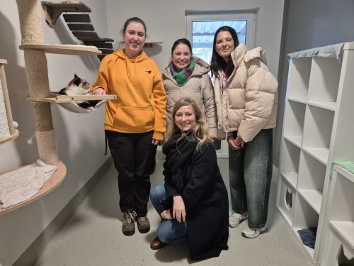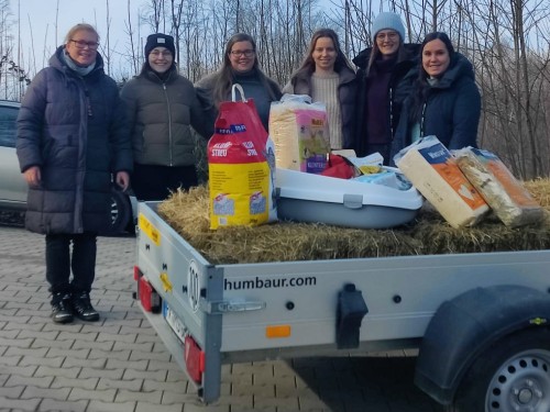 Drei Auszubildende der Diakonis-Pflegeschule Lage besuchten uns im Tierheim und hatten Futter für unsere Katzen im Gepäck.