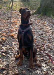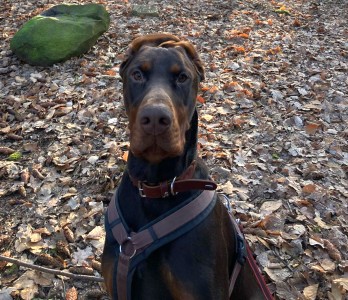 Der junge Dobermann Jens-Kevin kam im Dezember 2024 über die Behörde in unsere Obhut und wurde jetzt zur Vermittlung freigegeben.