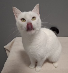 Die fast weiße Katze Darcy ist leider schon zum zweiten Mal aus der Vermittlung zurückgekommen. Ursprünglich wurde sie Sommer 2020 als Katzenkind gefunden und vermittelt. Zwei Jahre später wurde sie an uns zurückgegeben und fand erneut ein Zuhause, das sie nun aber auch wieder verloren hat, weil sie vom Nachbarkater dauernd verprügelt wurde.