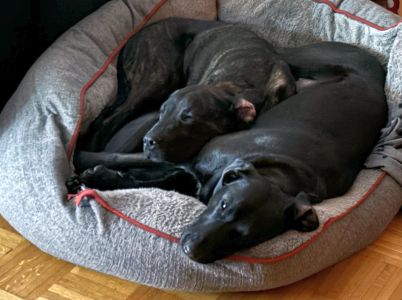 Inzwischen fährt Butch fast jeden Tag mit Herrchen ins Büro, liebt es mit seiner Freundin Leni im Garten zu toben, ausgiebige Wald-Spaziergänge zu unternehmen und sich von uns im kuscheligen Körbchen kraulen zu lassen. Man könnte sagen: Er ist ein fröhlicher junger Hund und ist voll und ganz bei uns angekommen. Nun beginnt allmählich die spannende Phase der Pubertät. Er testet immer mehr seine Grenzen aus.