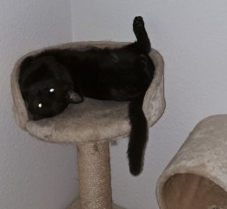 Ich bin mit meiner Schwester Mau Anfang Mai in unser neues Zuhause gezogen. Wir haben uns seit dem ersten Tag wohl gefühlt. Unser Herrchen kuschelt viel mit mir und spielt auch mit uns. Meine Schwester kuschelt nicht so gerne, dafür ist sie umso verspielter. Mittlerweile sind mein Herrchen und mein Frauchen auch zusammengezogen, so dass wir auch wieder umziehen durften. Die neue Wohnung ist sehr aufregend, und es gibt wieder vieles Neues zu erkunden.
