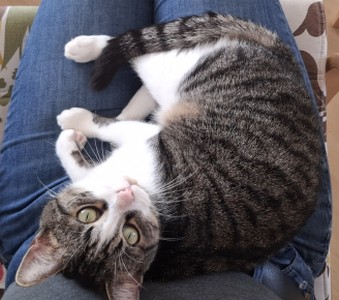 Gaudi - aus Gouda ist schnell Gaudi geworden - ist ein kleiner, neugieriger Wirbelwind, der wie ein Parcourist durch die Wohnung flitzt und vor nichts Halt macht. Keine geöffnete Schranktür oder Schublade ist vor ihr sicher. Aber sie liebt auch Kuscheleinheiten mit mir, hat sich von Anfang an auf den Arm nehmen und auch herumtragen lassen.