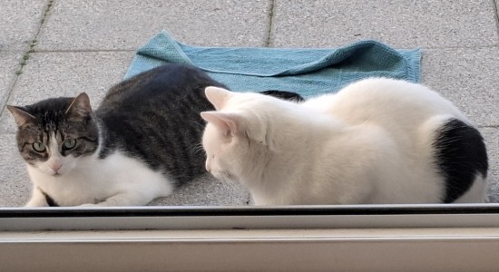 Aber ich habe beide auch schon dabei beobachtet, wie sie sich gegenseitig das Fell lecken. Nur kurz, aber immerhin! Sie wirken wie Geschwister, die sich mögen aber sich auch zwischendurch derbe auf den Keks gehen. Ich habe den Eindruck, dass die Vergesellschaftung der beiden auf einem guten Weg ist.