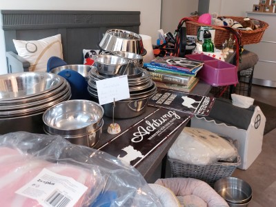 Vor allem die hochwertigen Hundekissen und Körbchen waren begehrt, und nach erfolgreichem Stöbern ließen sich unsere Besucherinnen und Besucher den herzhaften Kaffee und selbstgebackenen Kuchen schmecken.